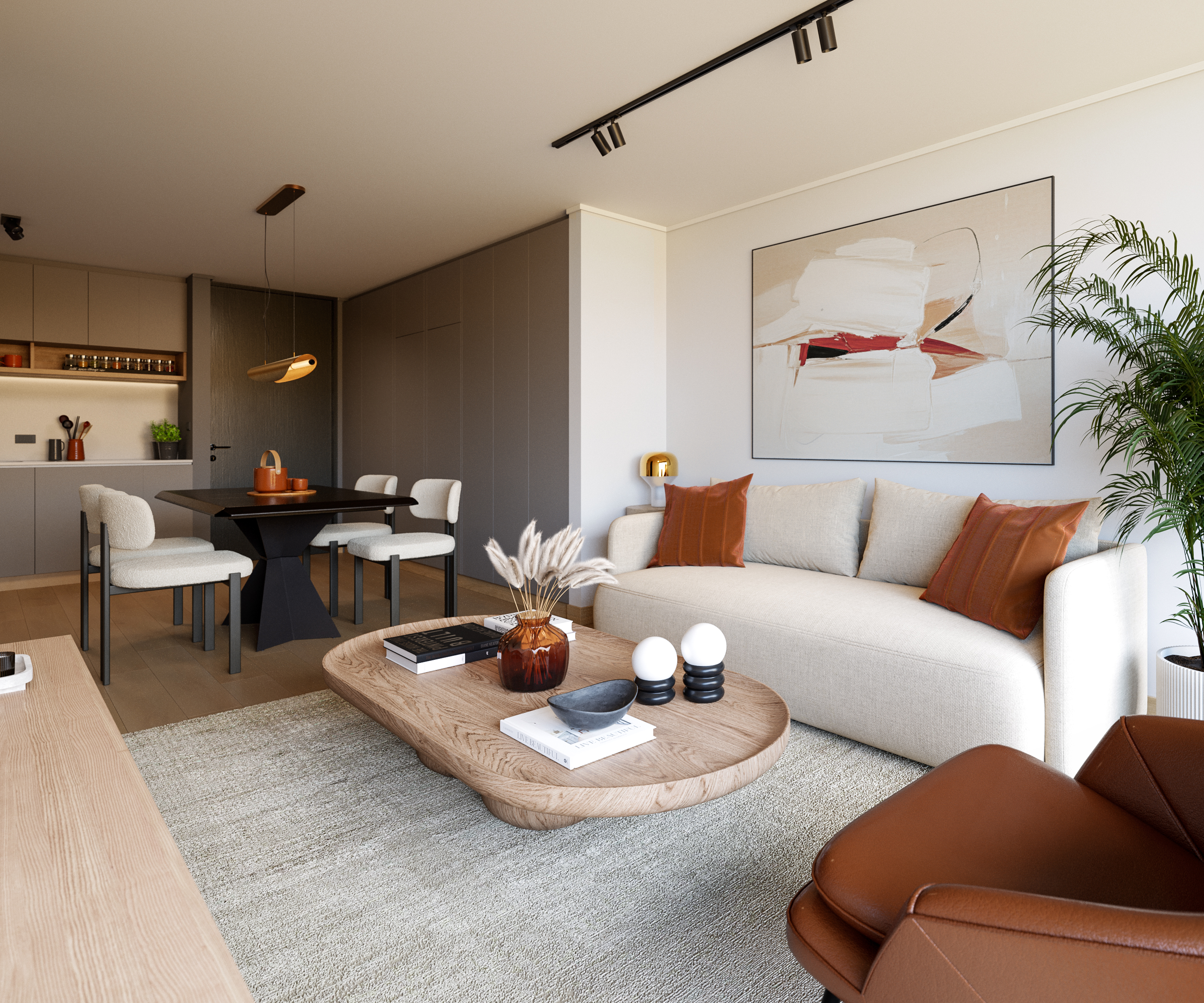 2 y 3 dormitorios con terraza y en la primera planta, un único departamento con patio propio funciona como una casa íntima dentro del edificio: un gesto de exclusividad y calidez que resume el espíritu del proyecto.